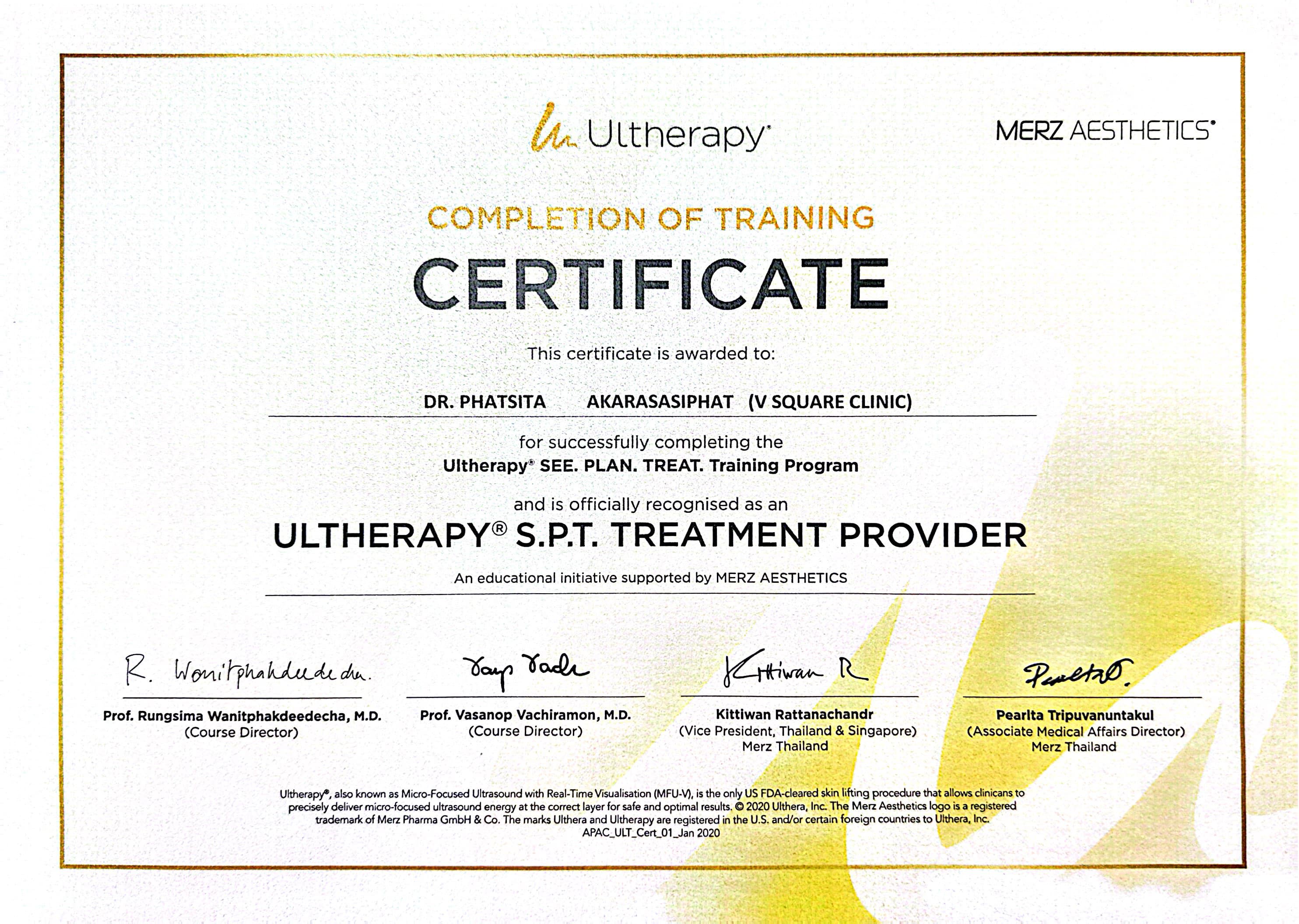COMPLETION OF TRAINING CERTIFICATE : Ultherapy® S.P.T. Treatment Provider by MERZ Aesthetics