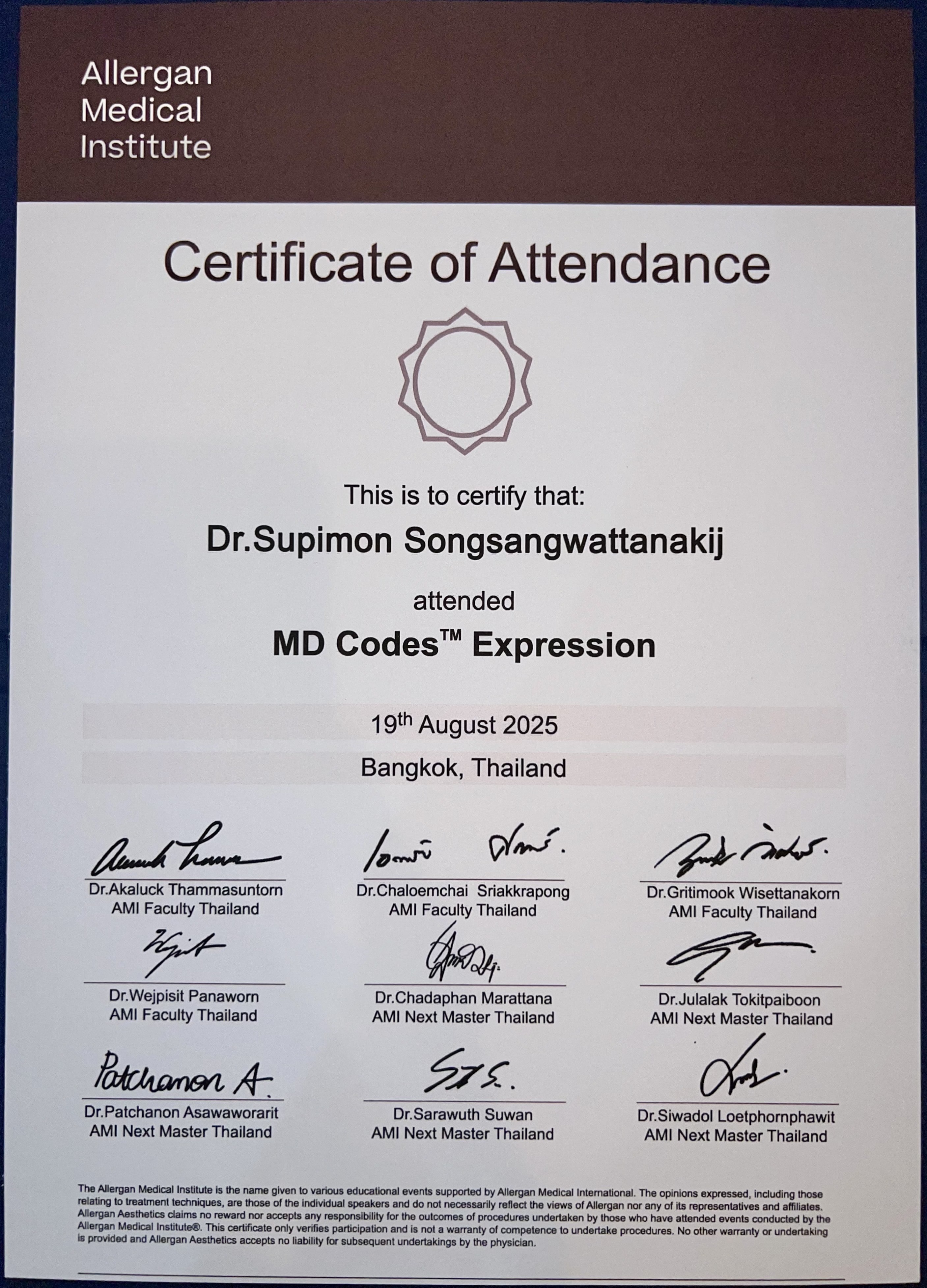 Certificate of Attendance : MD codes Expression, Allergan medical institute