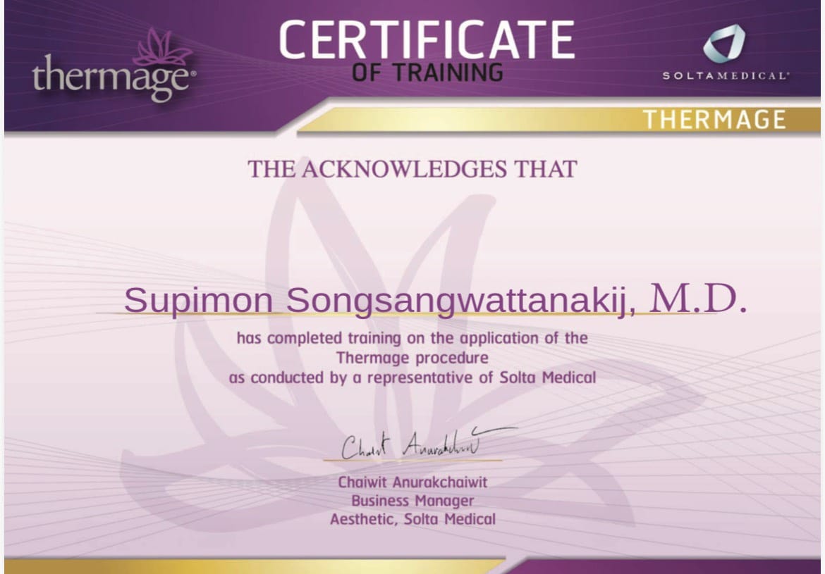 COMPLETION OF TRAINING CERTIFICATE : Ultherapy® S.P.T. Treatment Provider by MERZ Aesthetics